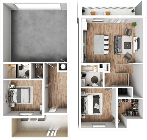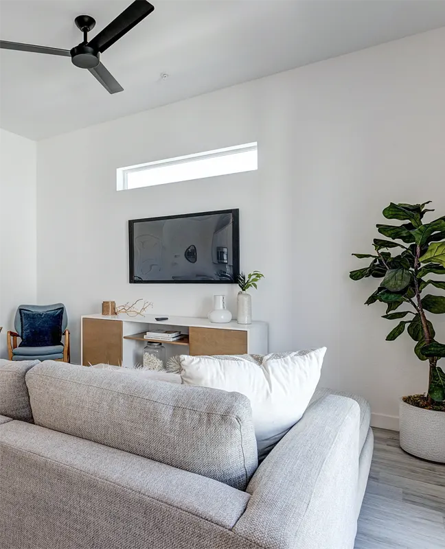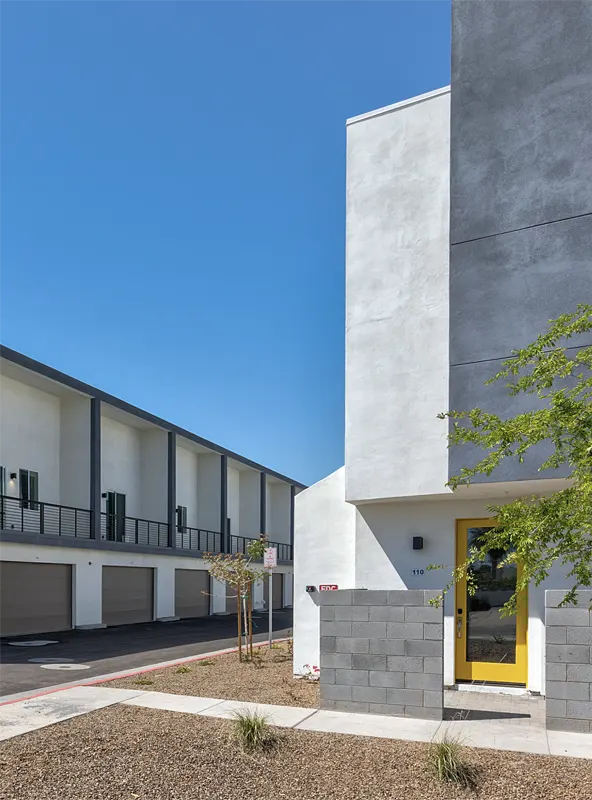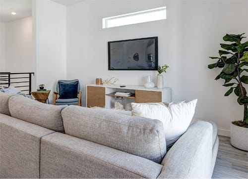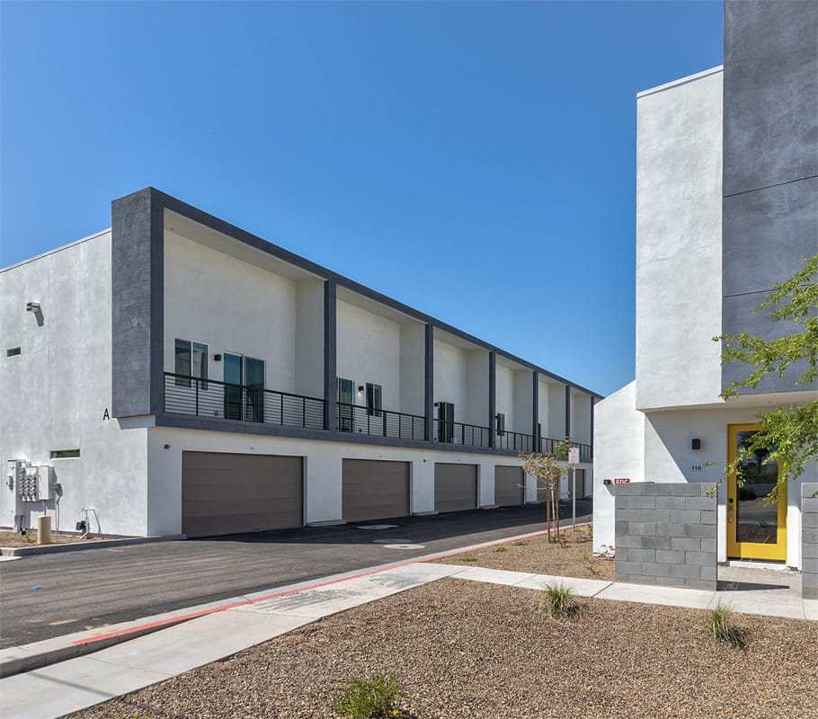 Boulevard on Missouri is comprised exclusively of two-story townhomes, all containing a split bedroom floorplan with one bedroom and bathroom on the first floor, and the main bedroom and bathroom on the second floor, all brightly illuminated with natural light and filled with modern finishes and amenities.