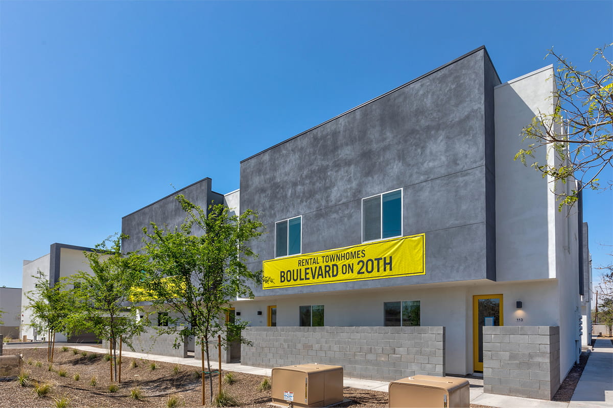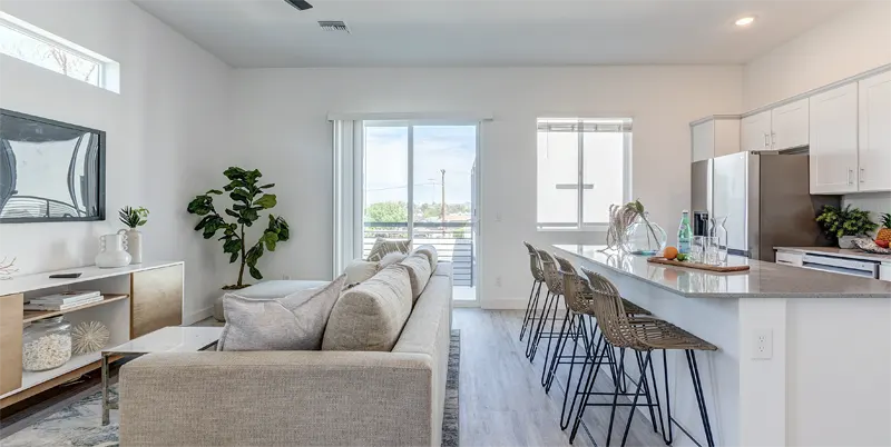 Townhome apartments designed to be personalized, featuring modern, minimalist finishes and unparalleled privacy.